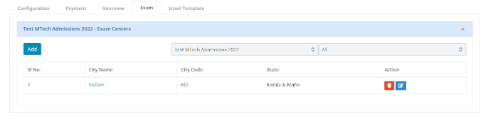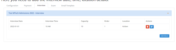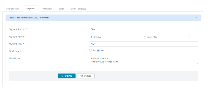 Select which modules are required - Payment, Exam, Interview. These modules will appear to setup only if they are selected here.