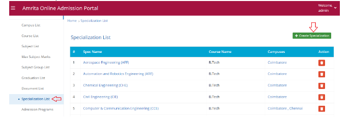 Go to Specialization under Admin in left menu.