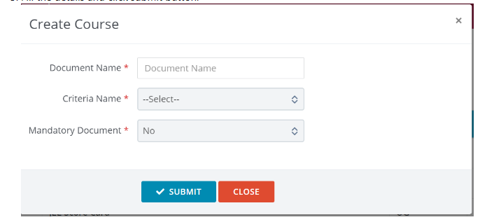 This is the page where you need to define which all documents are required for applying the admission program. To create a new document type -