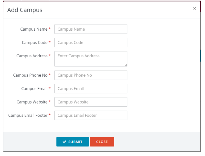 Add campus window opens. Fill all details and click submit.