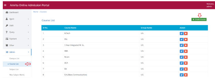 This page displays the list of courses. Here you can add new course to this application. To add new course -