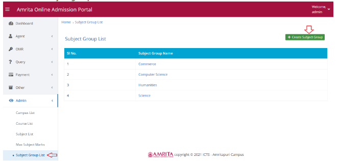 Go to Subject Group List under Admin in left menu.