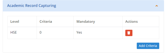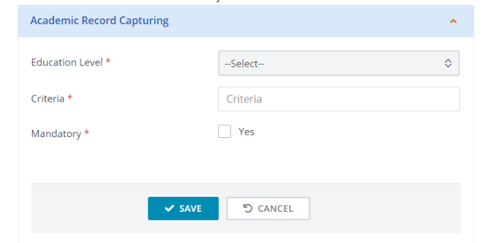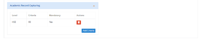 Select Education level required for this program. Enter Criteria which is required for this program.
