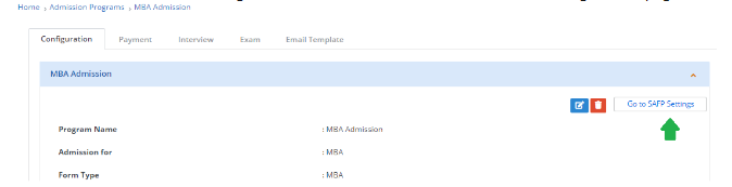 Click on the “Go to SAFP Settings” button, which will load the Tuition Fee Configuration page.