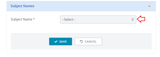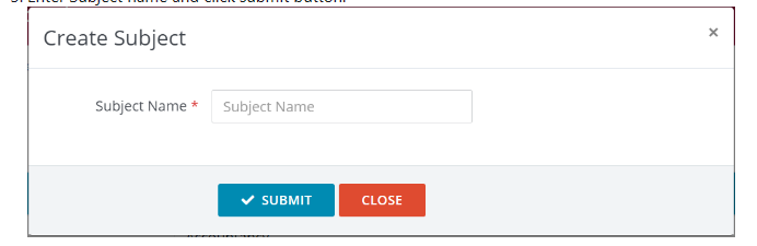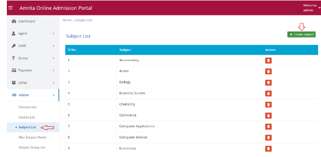 This page displays the list of subjects. Here you can add new subject to this application. To add new subjects -