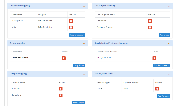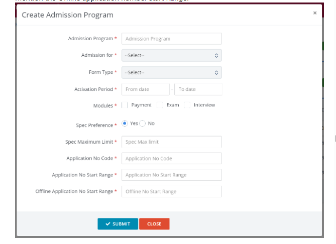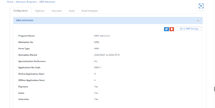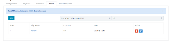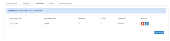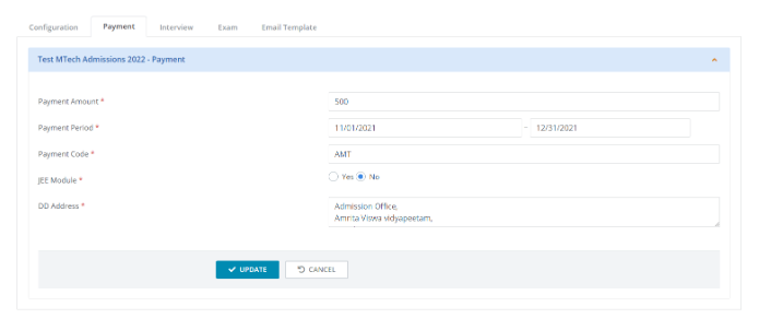 Select which modules are required - Payment, Exam, Interview. These modules will appear to setup only if they are selected here.
