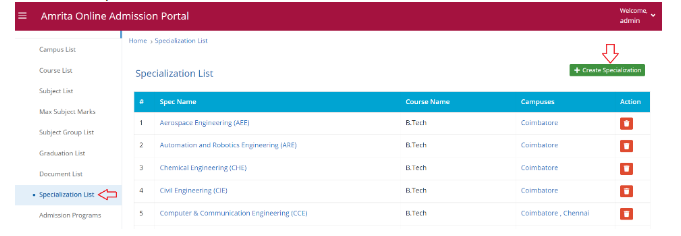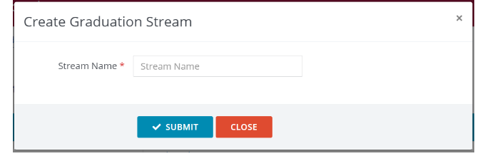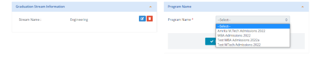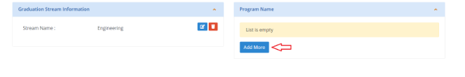 This page displays the list of graduation stream in this application. This graduation stream is to be mapped with the Application Programs in later stage. Based on this Graduation stream, the candidate will get program choices in the login page to register. To add a new Graduation -