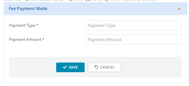 Click Add Payment button. Enter Payment Type and Payment Amount. Click Save.