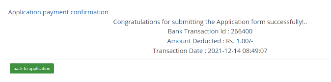 If the payment gets fail due to any circumstances, a Payment Failed page will be displayed. There is a “Back to application” to go back the application page and retry the payment again.