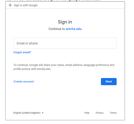You will be redirected to sign in with google credentials