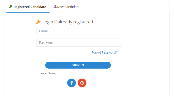 A registered candidate can login with either of the two methods