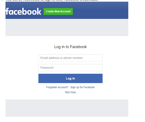 You will be redirected to sign in with Facebook credentials.