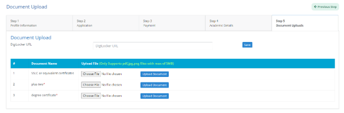 This is the final Step where the candidate needs to upload the educational documents.