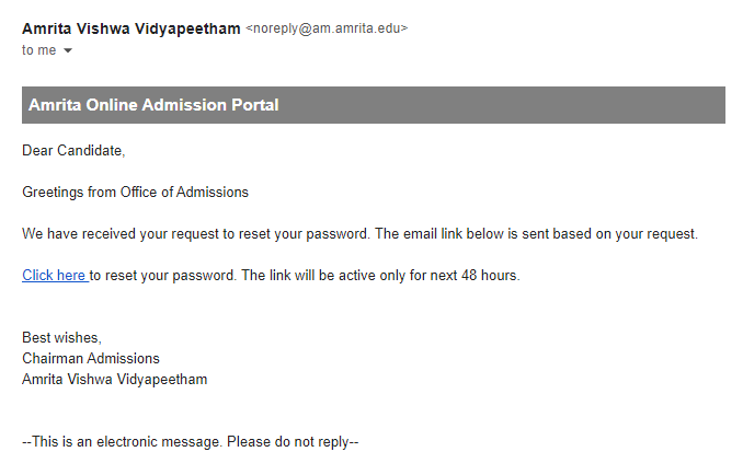 Type http://amrita.edu/admissions and click enter