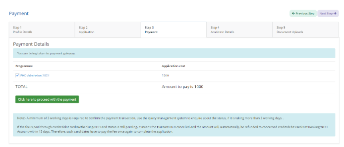Candidate needs to click on the “Click here to proceed with the payment” to proceed if all details displayed are confirmed.