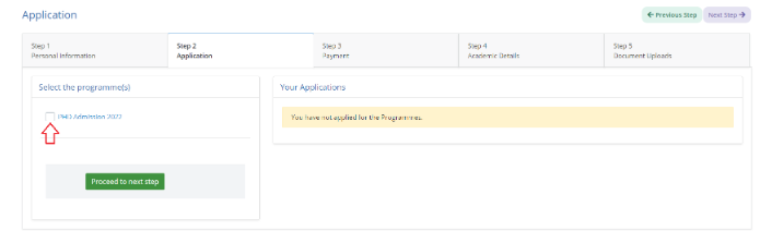 Candidate need to mark the check box to select the programme.