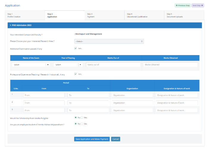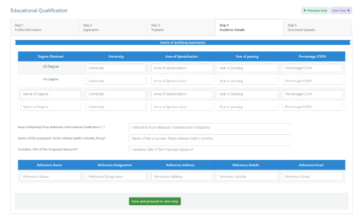 Candidate need to fill up the complete information and save the page to go to next step.