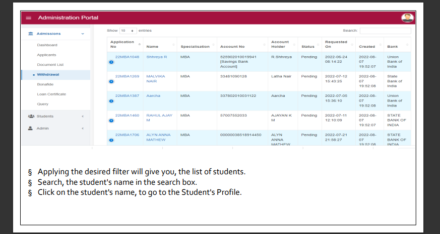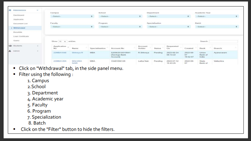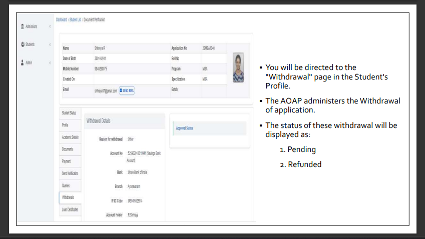 How to check application withdrawal status?