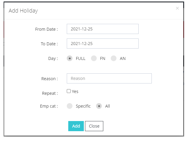 Specify whether the holiday is for Full day / Forenoon / Afternoon