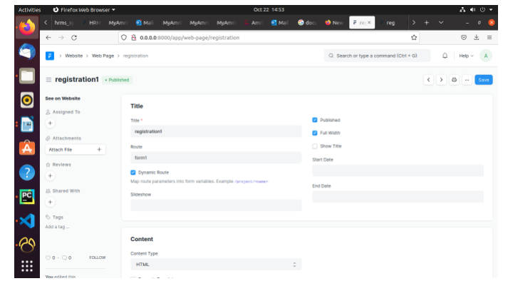2.Enter a title and add content in main section . The route will auto generated but you can change it.