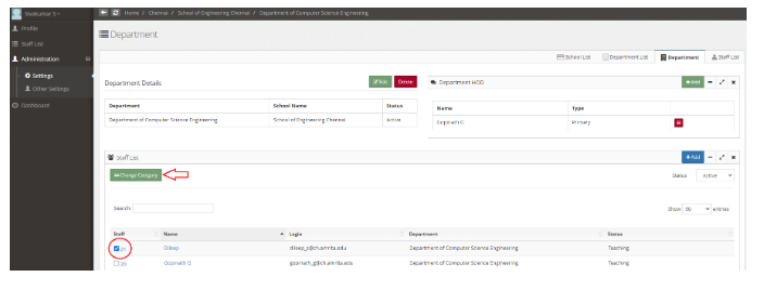 Click on the Department name to open the department page from which the staff movement needs to be done