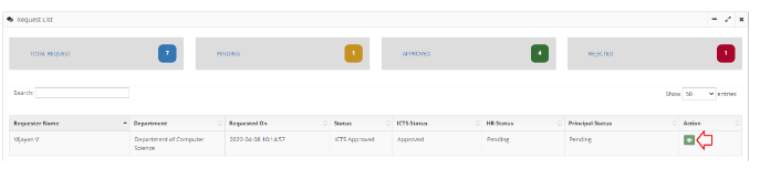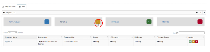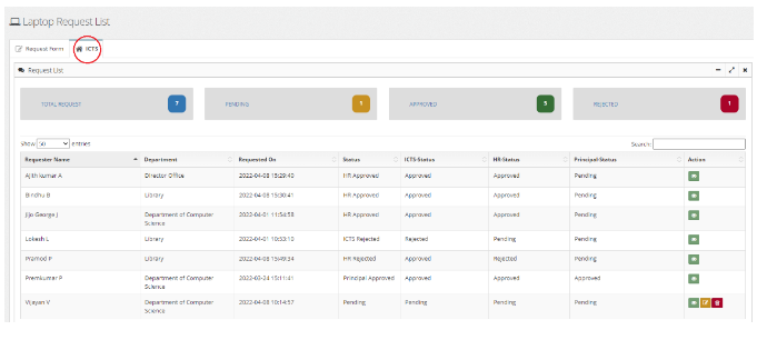 The list of laptop requests will be displayed under the tab 'ICTS'.
