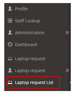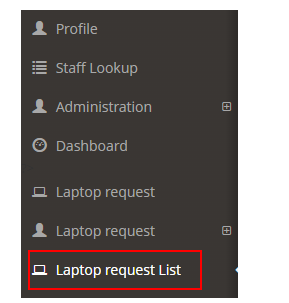 Once the ICTS-admin login, click on the Laptop request list at the left side menu.