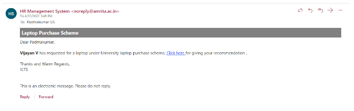 The ICTS admin will do the laptop request approval on behalf of the ICTS department.