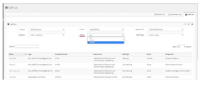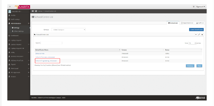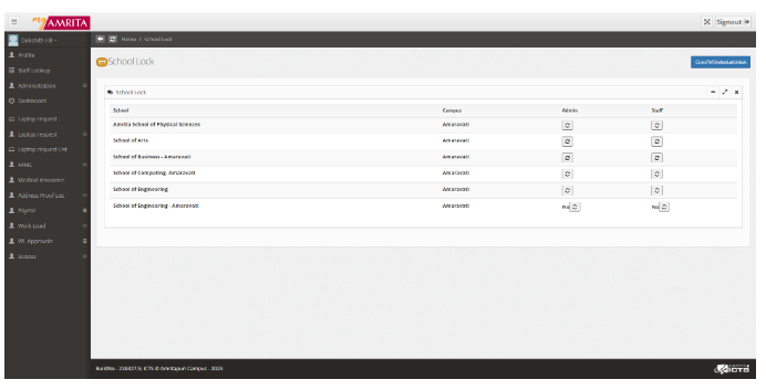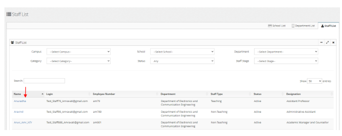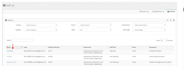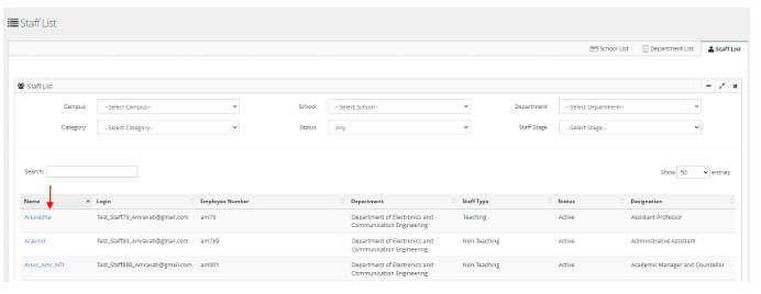 Click on the particular school, which you need to unlock(Staff-Yes/No). Yes means lock and No means unlock as shown below.