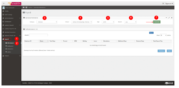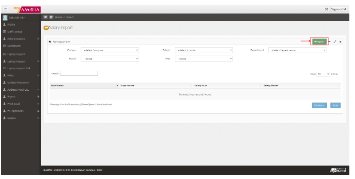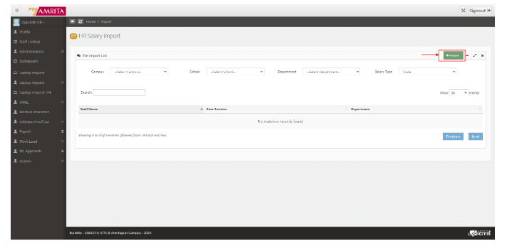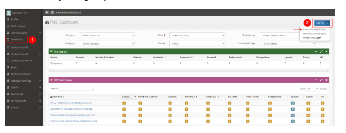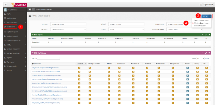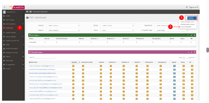 The FMS Report - Campus Wise displays provides the count of staff/faculties who have updated their HRMS data campus-wise.