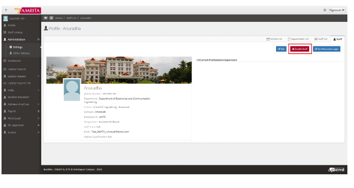 Staff status will get Disabled automatically once the Email with relieving order and experience certificate is sent.