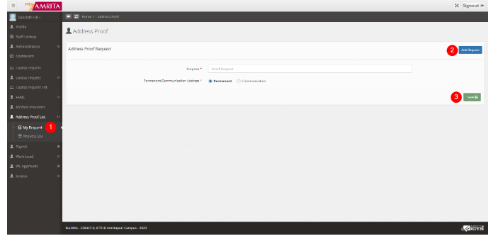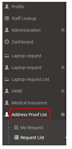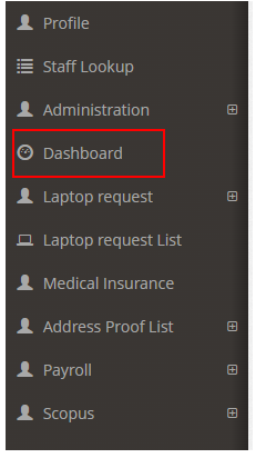 When faculty member logs into HRMS, they can request a laptop by accessing the Laptop Requestoption on the left-side menu. This option opens up a submenu that includes two options: