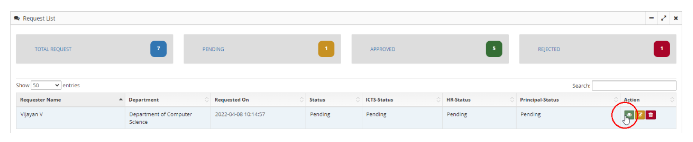 The ICTS admin can reject the request by clicking the Reject button if required.