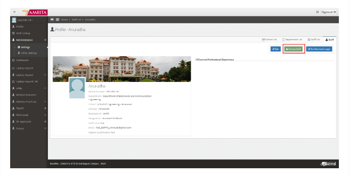 Clicking this button will send an email with relieving order and experience certificate to the alternate email id of the staff. The application uses the email template which we configured early for the relieving order.