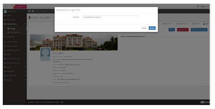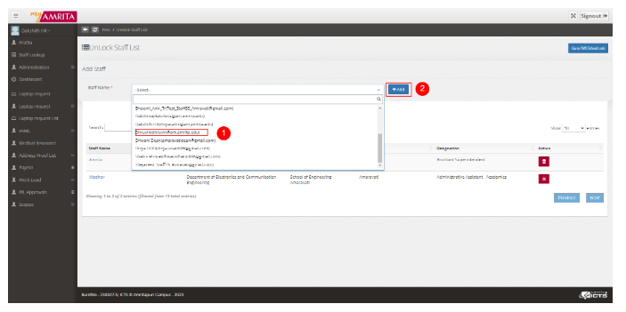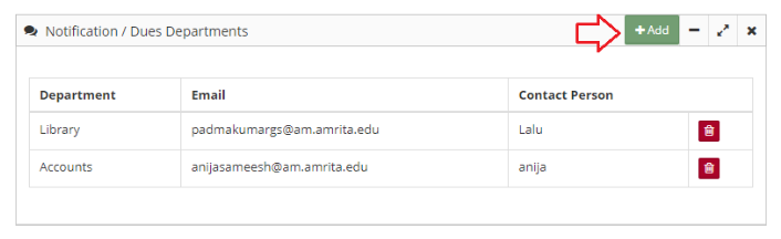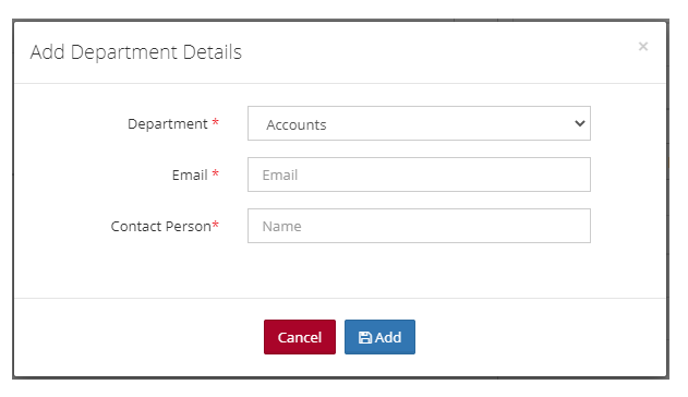 Select the department from the drop-down, and enter the email address and contact person name. Click Add button.