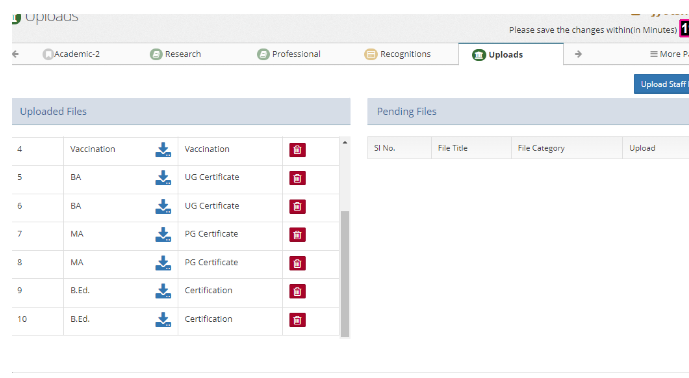 Once all the No Dues verification got approved, Click on the Upload button to upload the Experience certificate.