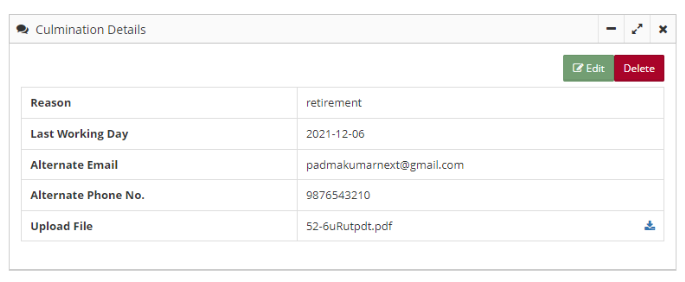HR can Edit or delete the culmination process by clicking Edit or Delete button respectively.