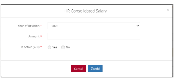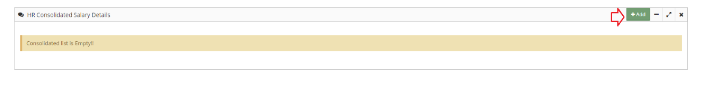 Here to add Consolidated salary details manually one by one click on the Add button as displayed in the figure below