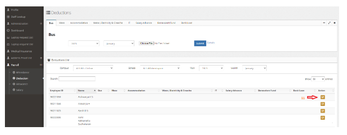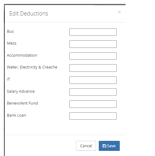 Deduction amount can be added to staff either individually or bulk upload.