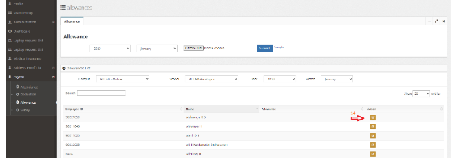 Allowance amount can be added to staff either individually or bulk upload.
