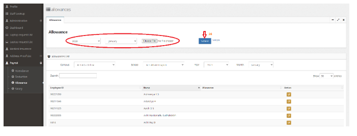 For bulk entry, you can upload the allowance list in the sample format as shown below.