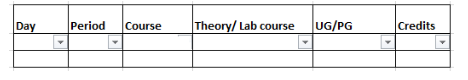 When a teaching staff login to HRMS, a tile is required," Workload". While selecting, it should navigate to a page :Teaching" to enter the details as shown below,