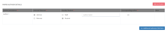If an external author is mentioned in the paper, the user can add the Author’s details.