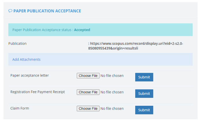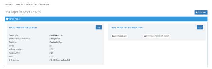 Once the paper publication is accepted, user needs to upload the