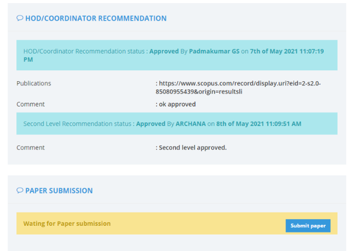 Once the Second level is approved, users need to submit the paper