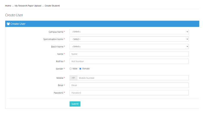Fill all details and click Submit to add a new student