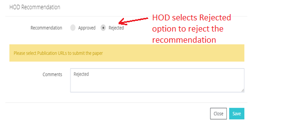 HOD Recommendation Rejected