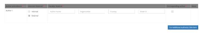 To add more authors, click on the button “For Additional Authors Click here”