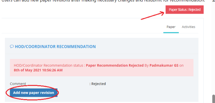 Users can add new paper revisions after making necessary changes and resubmit for recommendation.