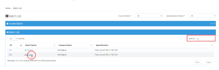 • To add bulk students to batch, click “Choose File”. Browse and select the csv file with list of students from local machine.